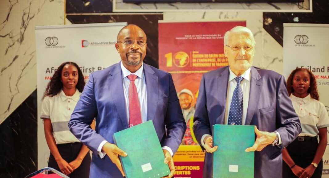 (BFI) – Afriland First Bank Cameroun est officiellement devenu partenaire de premier plan du Salon international des affaires, des PME et des partenariats (PROMOTE) 2026, suite à la signature d’un accord de partenariat le 15 avril 2026 à Yaoundé. Cet accord, signé par le Directeur général d’Afriland First Bank, Célestin Guela Simo, et Pierre Zumbach, Fondateur et Conseiller principal auprès de la Présidence de la Fondation Inter-progress, définit le cadre de la collaboration en amont du salon qui se tiendra du 12 au 21 juin 2026 au Centre de conférences de Yaoundé.