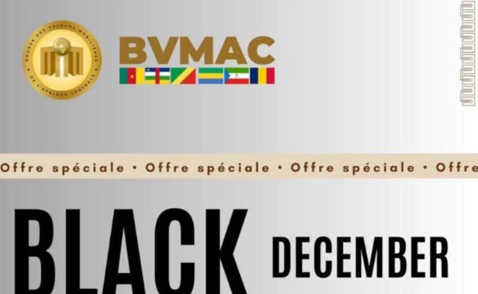(BFI) -La Bourse des valeurs mobilières de l’Afrique centrale (Bvmac), marché financier unifié des pays de la Cemac (Cameroun, Congo, Gabon, Guinée équatoriale, Tchad et RCA), lance du 1er au 31 décembre 2025 sa première campagne promotionnelle, baptisée « Black December ». Sur toute cette période, les investisseurs bénéficieront « d’une réduction exceptionnelle de 50 % sur les frais de courtage applicables par la Bvmac, pour tout échange de titre d’une valeur transactionnelle totale supérieure ou égale à 1 000 000 FCFA ».